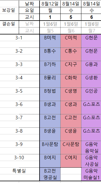 * 3학년 월요일 1교시, 수요일 5,6교시에는 수능 이후 당김 수업이 진행됩니다.